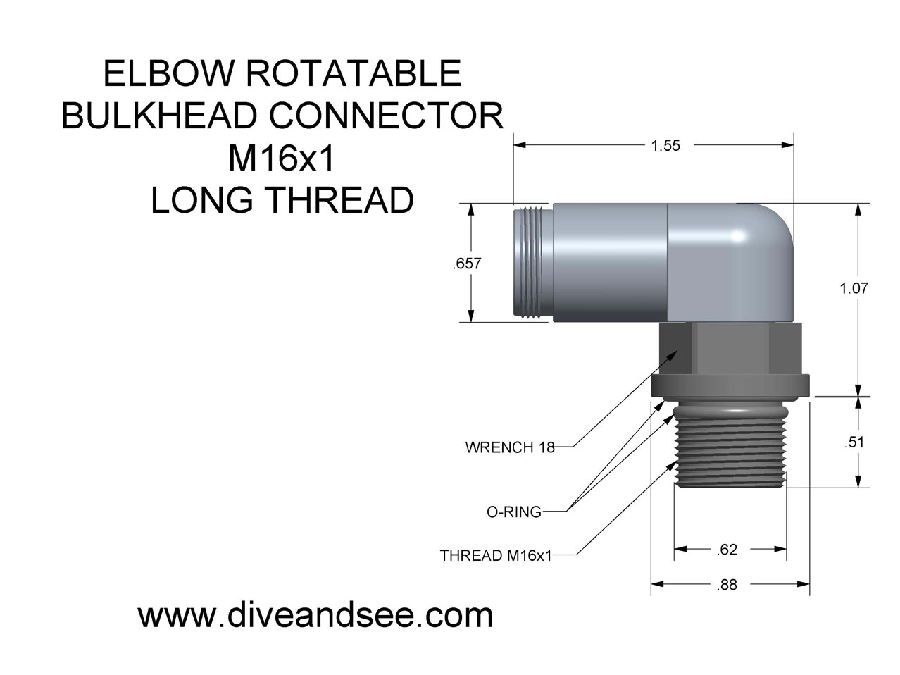 SDI, Elbow style, Swivel Right Angle underwater bulkhead connector M16, Long thread